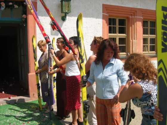 Ein Höhepunkt in diesem Jahr waren Hochzeiten. Am 01. August wurde bei Jens Thierbach (Vereinsvorsitzender) und Beatrice Schmidt ordentlich „gepoltert“. Dabei war zweifelsohne das Ballett der männlichen Schwäne ein Höhepunkt.